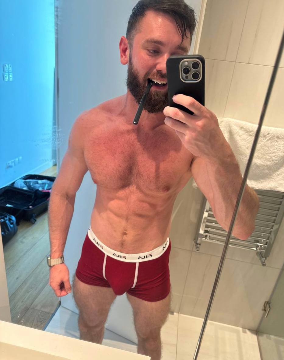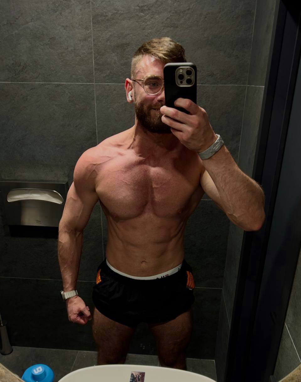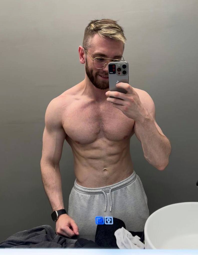 Уверенный мужчина со спортивным, рельефным телосложением.